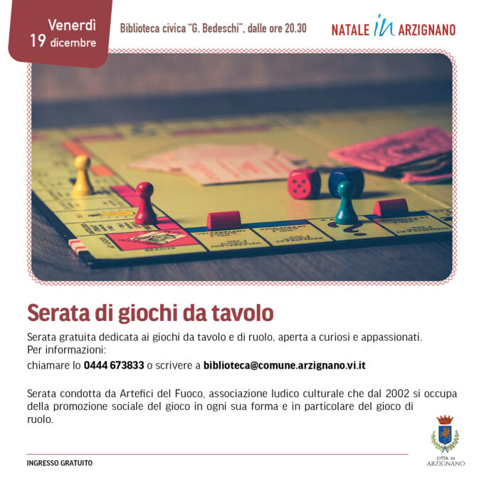 Biblioteca e Cultura Serata di giochi da tavolo in biblioteca, venerdì 19 dicembre 17/12/2025 Il Si ...